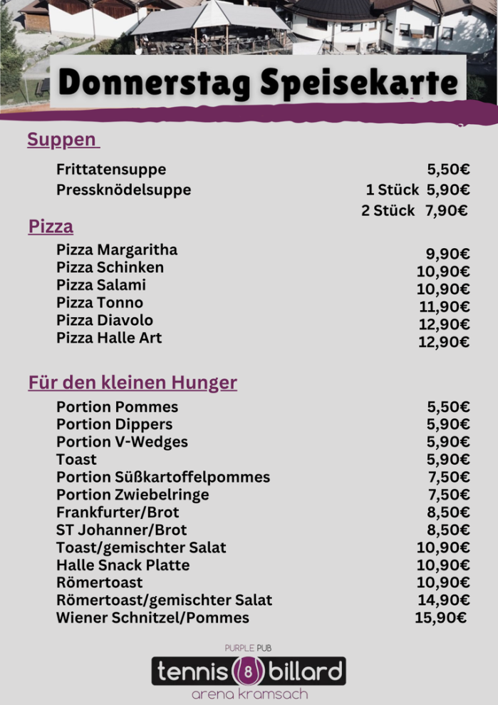 Montag: 08.30 – 23.00 Dienstag: 08.30 – 23.00 Mittwoch: 08.30 – 23.00 Donnerstag: 15.00 - 23.00