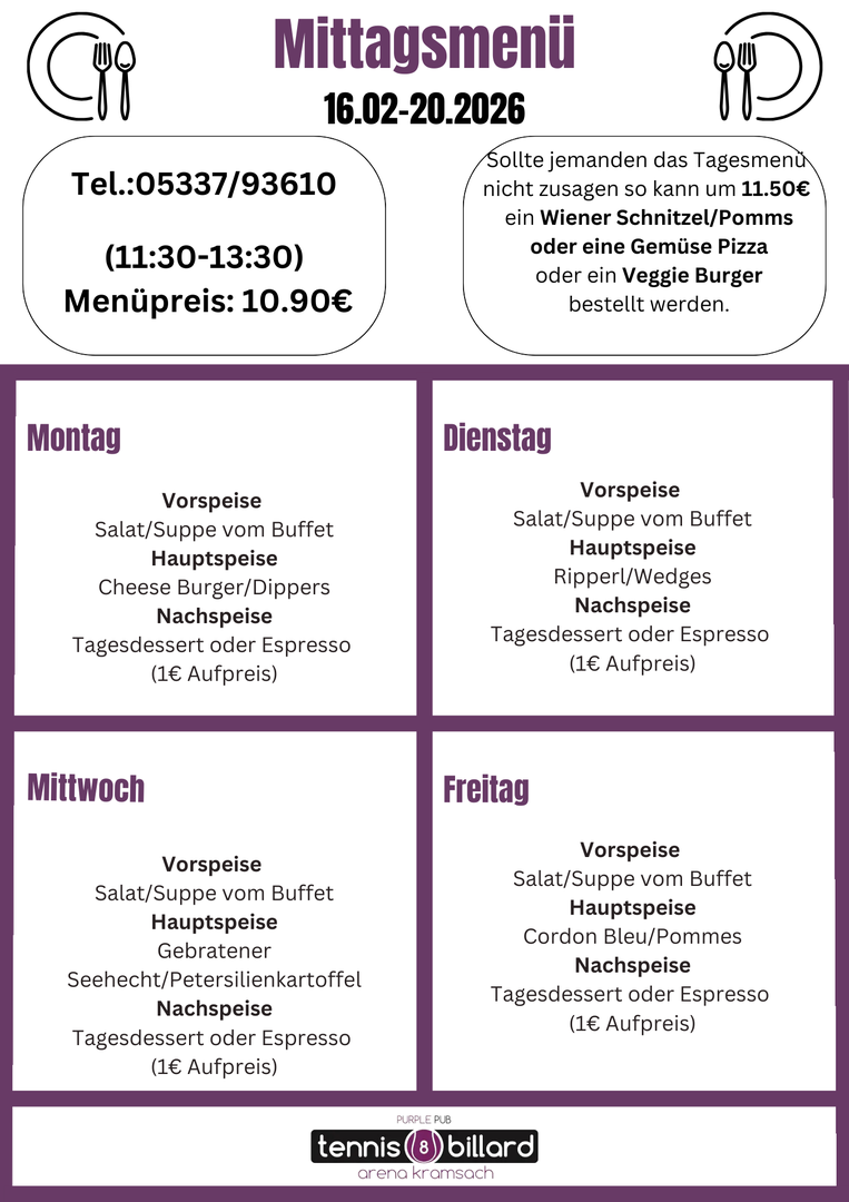Montag: 08.30 – 23.00 Dienstag: 08.30 – 23.00 Mittwoch: 08.30 – 23.00 Donnerstag: 15.00 - 23.00