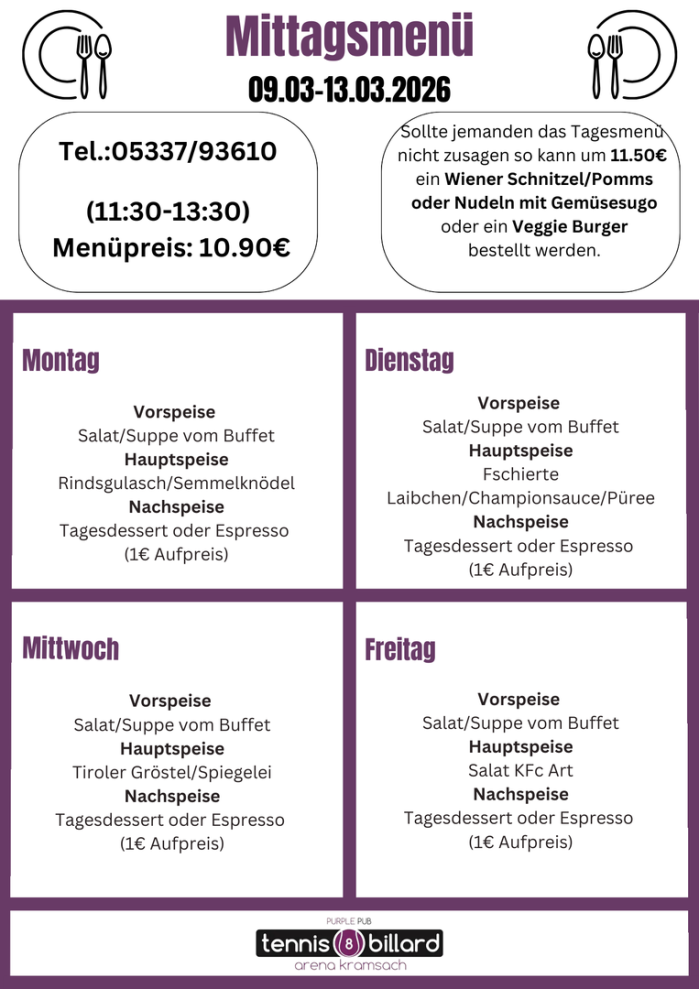Montag: 08.30 – 23.00 Dienstag: 08.30 – 23.00 Mittwoch: 08.30 – 23.00 Donnerstag: 15.00 - 23.00